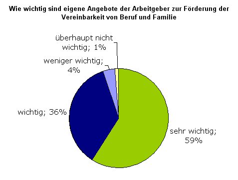 91% sehen eigene Angebote der Arbeitgeber zur Förderung der Vereinbarkeit von Beruf und Familie als wichtig (36%) oder sogar sehr wichtig (59%) an.